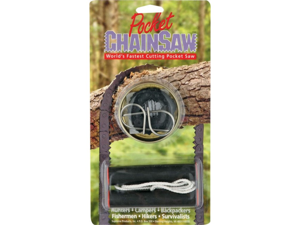 Supreme Products — американский бренд, специализирующийся на производстве высококачественных цепных ручных пил. Продукция компании отличается инновационным дизайном, надежностью и долговечностью, благодаря чему заслужила признание среди профессионалов и любителей. Все пилы Supreme Products производятся в США, что гарантирует строгое соблюдение стандартов качества и использование передовых технологий. Бренд акцентирует внимание на удобстве использования и безопасности, делая свои инструменты идеальным выбором для широкого спектра задач. Карманная цепная ручная пила Pocket Chainsaw от Supreme Products является самой быстрорежущей пилой в своем классе. Способна перерезать ветку диаметром около 7,6 см менее чем за 10 секунд. Изготовлена из высокопрочной стали, подвергшейся термообработке и покрытой слоем для защиты от ржавчины. Длина пилы составляет 71 см, а на ее ленте расположено 124 двунаправленных режущих зубца, что обеспечивает высокую эффективность резки как при движении вперед, так и назад. В комплект входят две ручки для удобства использования. Этот инструмент идеален для походов, кемпинга и других видов активного отдыха, где важно иметь компактный и эффективный инструмент для работы с древесиной. Эта модель пилы находит свое применение в армии США, подчеркивая ее надежность и высокое качество, соответствующее самым строгим военным стандартам.