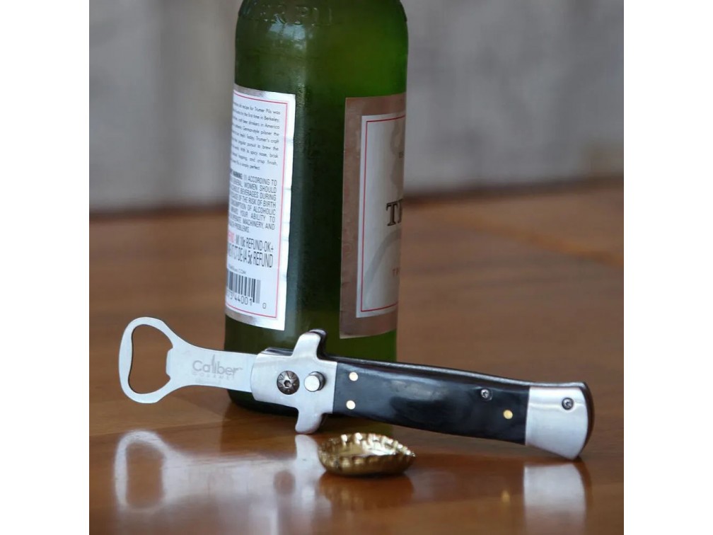 Открой пиво на стиле! Открывалка для бутылок от Caliber Gourmet полностью повторяет механику автоматического выкидного ножа! Американская компания Caliber Gourmet производит уникальные тактические аксессуары и оригинальные приспособления для кухни и бара в стиле милитари, которые станут идеальным подарком на любой случай, а также позволят Вам удивить своих друзей необычными вещами.