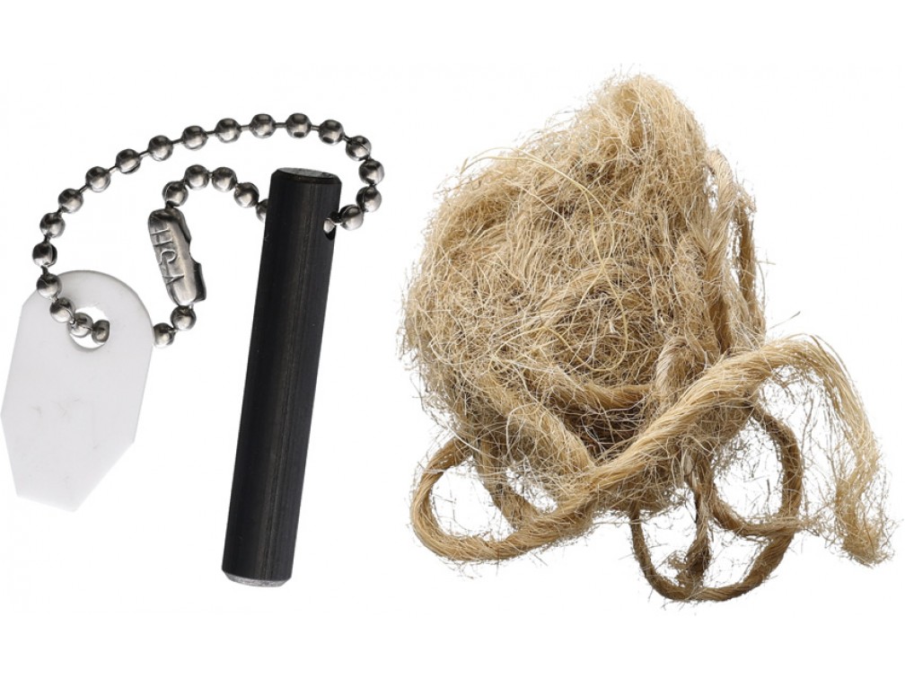 Wazoo Survival Gear - американский EDC-бренд, который специализируется на сверхкомпактных инструментах для ежедневной готовности. Компания известна поясами и аксессуарами с скрытыми функциями, а также мини-наборами для огня, которые легко закрепить на ключах или карабине. Философия Wazoo - носить самое нужное так, чтобы оно не мешало: огниво, скребок и трут в формате брелока, готовые к работе даже во влажной среде и при ветре.Wazoo Firestarter Keychain с керамическим скребком - мини-набор для огня, который живет на ключах и не требует батареек. В комплекте есть компактное огниво (ферроцериевый стержень), керамический скребок и небольшой запас трута, соединенные шариковой цепочкой. Керамика не ржавеет и почти не тупится, поэтому скребок остается рабочим даже при постоянном ношении в кармане. Огниво дает горячие искры, которые помогают разжечь костер, горелку или аварийную свечу, если зажигалка закончилась или промокла. Формат брелока удобен для EDC: инструмент всегда с собой, но не занимает место в рюкзаке. Для розжига разлохматьте трут, добавьте тонкую сухую стружку, затем прижмите скребок к огниву и проведите резким движением, направляя искры вниз. Лучше всего работают береста, ватные тампоны и готовые разжигатели; держите трут сухим в пакетике. По данным ритейлеров, эта версия производится в Китае. Керамический элемент длиной около 20 мм удобно держать пальцами, не рискуя порезаться. Огниво можно снять с цепочки и работать отдельно, фиксируя его у основания трута. После намокания достаточно стряхнуть воду: искра сохраняется. Держите набор подальше от синтетики и топлива - искры очень горячие.