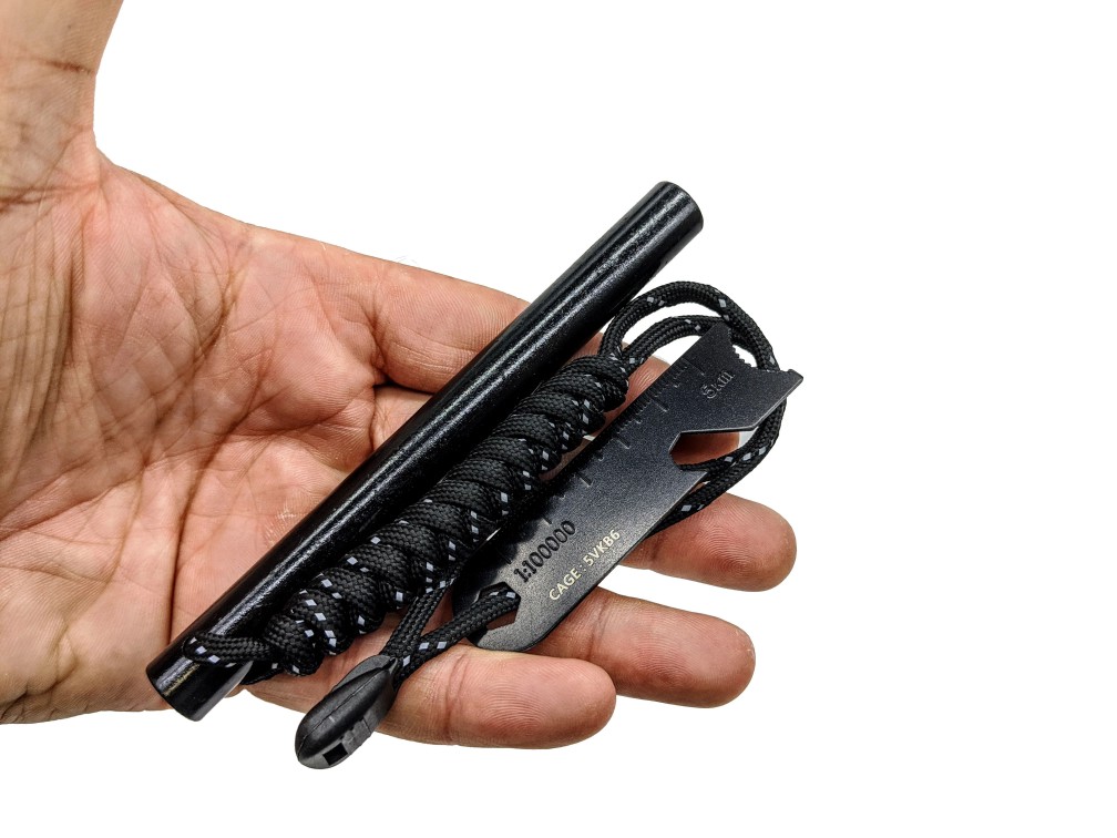 Maratac Ferrocerium Rod and Striker — компактное и надёжное огниво с аксессуарами от американского бренда Maratac, специализирующегося на производстве EDC-аксессуаров и снаряжения для активного отдыха и выживания. Основное назначение изделия — генерация искр для розжига огня в любых погодных условиях, включая дождь и ветер. Огниво изготовлено из долговечного ферроцерия, горящего при температуре свыше 5550°F (около 3050°C). Технические характеристики: длина — 12,7 см (5 дюймов), диаметр — 1,27 см (0,5 дюйма), вес — примерно 140 г. В комплект входит металлический ударник со встроенным открывалкой для бутылок, а также складной защитный тубус, который можно использовать как ёмкость для хранения трута. Практично применять при туризме, кемпинге, охоте и в ситуациях выживания как надёжный источник огня.
