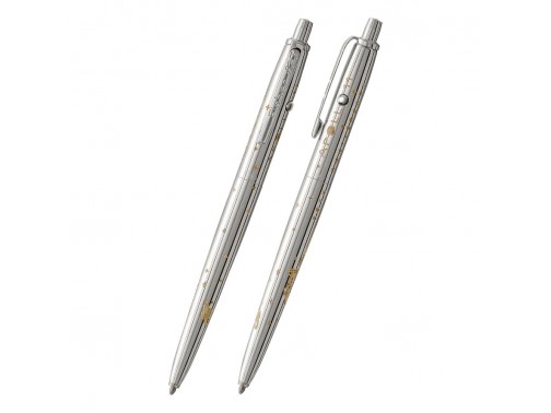 Все астронавтские ручки гордо производятся в США. Каждая из них изготовлена из цельной латуни с твердым хромированным покрытием, что придает ей солидный вес и прочность. Ручка оснащена уникальным механизмом нажатия: выдвижение пишущего узла происходит при нажатии кнопки на верхушке, а втягивание – при нажатии боковой кнопки, которая издает отчетливый звук, помогая не забыть убрать пишущий узел перед тем, как убрать ручку в карман.