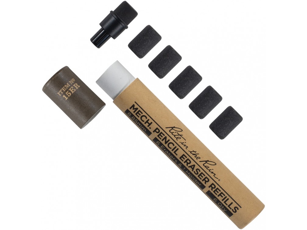 Rite in the Rain - американский бренд полевой канцелярии, который выпускает всепогодные блокноты, ручки и карандаши для работы под дождем и в грязи. Их бумага и пишущие инструменты рассчитаны на стройку, экспедиции, службу и туризм, где обычная канцелярия быстро сдается. Компания делает упор на простую эргономику, надежные материалы и совместимость расходников, чтобы инструмент работал в перчатках и при низких температурах.Rite in the Rain No.15ER - комплект сменных ластиков для механических карандашей серии No.15. В упаковке шесть ластиков темно-серого цвета и тубус-держатель, который помогает хранить запас аккуратно и не терять его в сумке. Ластики рассчитаны на всепогодную бумагу Rite in the Rain и на обычные листы: они снимают графит без разрыва волокон и без лишней крошки, что важно в полевых условиях и на рабочем месте. Замена занимает секунды: извлеките изношенный ластик из держателя, вставьте новый и верните узел в карандаш. Такой набор полезен тем, кто пишет много: на стройке, в экспедиции, на стрельбище, в походе и в машине, где карандаш часто становится основным инструментом для заметок и маркировки. С запасными ластиками проще держать записи чистыми, исправлять координаты, размеры и схемы, не переписывая лист заново. Храните тубус закрытым и не оставляйте ластики рядом с маслом и растворителями, чтобы они не размягчались и дольше сохраняли форму. Ластики совместимы с карандашами No.15 Work-Ready и помогают поддерживать инструмент в рабочем состоянии без покупки нового. Если ластик забился графитом, просто срежьте слой ножом и продолжайте.