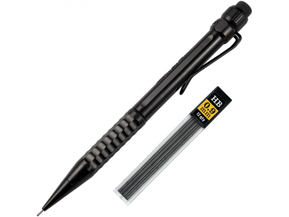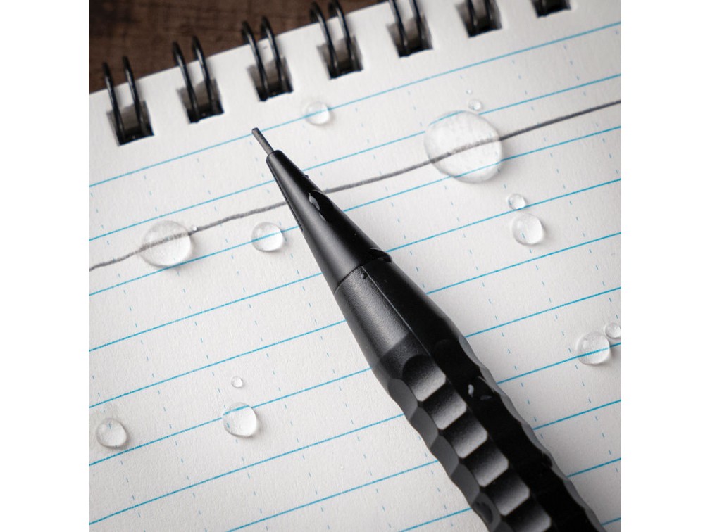 Precision Twist Pencil — механический карандаш от американского бренда Rite in the Rain, специализирующегося на влагозащитных пишущих инструментах. Корпус выполнен из ударопрочного ABS-пластика с металлическими элементами, что обеспечивает высокую устойчивость к повреждениям, влаге и загрязнениям. Механизм подачи грифеля реализован в виде надёжного поворотного узла Twist Advance, позволяющего точно выдвигать и втягивать стержень. Грифель толщиной 0,9 мм (твёрдость HB) подходит для записей на любой поверхности, в том числе на водостойкой бумаге. Задняя часть корпуса снабжена ластиком и отсеком для хранения до 12 запасных грифелей. Металлическая клипса позволяет надёжно крепить карандаш к блокноту, одежде или рюкзаку. Длина карандаша составляет около 14,5 см, диаметр корпуса — примерно 1,2 см, вес — около 28 граммов. Благодаря прочной конструкции, влагостойкости и удобству в использовании, этот карандаш отлично подходит для работы в полевых условиях, на стройке, в походах и других экстремальных ситуациях. Сделано в США.