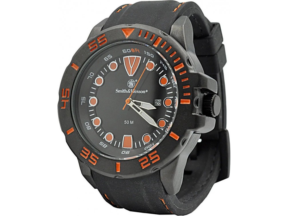 Smith & Wesson Firearms Co. — легенда американского оружейного рынка. Компания знаменита производством надежных револьверов. Производство расположено в Спрингфилде, штат Массачусетс, и основано в 1852 году Хорасом Смитом и Д. Б. Вессоном. С 1860 года оружие Smith & Wesson начало поставляться в Российскую империю. В настоящее время помимо огнестрельного оружия Смит и Вессон выпускает широкий спектр оружейных и тактических аксессуаров. Тактические часы S&W Scout Watch выполнены в стиле классических военных часов. Диаметр корпуса – 48 мм. Высота – 14 мм. Дополнительная функция – дата. Точность хода обеспечивается практичным японским кварцевым механизмом. Водозащита – 50 м. Минеральное стекло. Покрытие – Black.