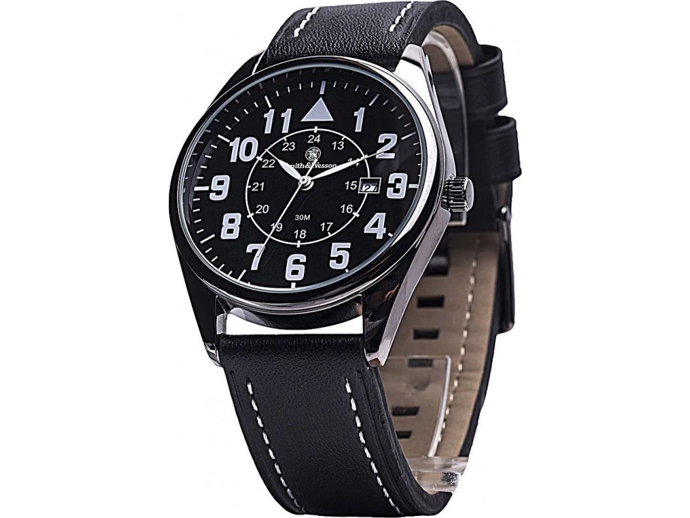 Smith & Wesson Firearms Co. — легенда американского оружейного рынка. Компания знаменита производством надежных револьверов. Производство расположено в Спрингфилде, штат Массачусетс, и основано в 1852 году Хорасом Смитом и Д. Б. Вессоном. С 1860 года оружие Smith & Wesson начало поставляться в Российскую империю. В настоящее время помимо огнестрельного оружия Смит и Вессон выпускает широкий спектр оружейных и тактических аксессуаров. Тактические часы S&W Civilian Watch выполнены в стиле классических военных часов. Диаметр корпуса – 43 мм. Высота – 10 мм. Дополнительная функция – дата. Точность хода обеспечивается практичным японским кварцевым механизмом. Водозащита – 30 м. Минеральное стекло. Покрытие – Polished.