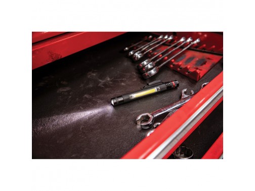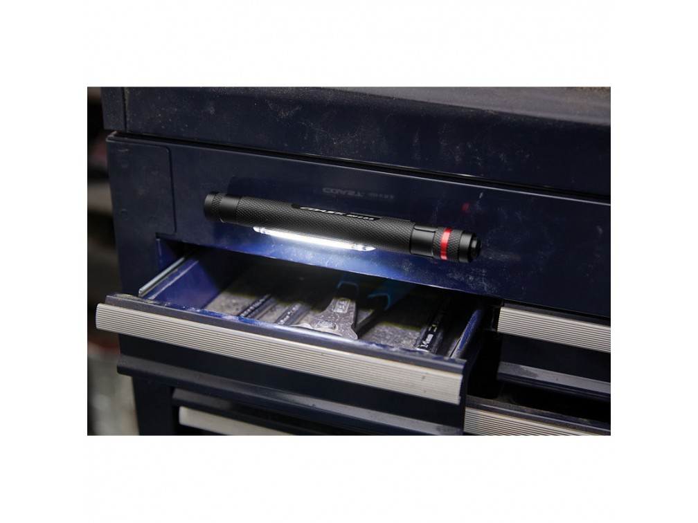 G23 C.O.B. Inspection Light — компактный осветительный инструмент от американского бренда Coast, созданный для точной и удобной работы в ограниченном пространстве. Фонарь оснащён двумя зонами света: фронтальный узконаправленный луч с яркостью до 120 люмен и боковая C.O.B.‑панель для заливающего освещения с белым или красным светом. Это делает модель универсальной как для точечной подсветки, так и для освещения рабочей поверхности. Управление осуществляется одной кнопкой, предусмотрены отдельные режимы для каждого источника света. Корпус выполнен из анодированного алюминия, защищён от пыли и влаги по стандарту IP54, устойчив к ударам. Благодаря магнитному основанию и съёмной клипсе фонарь можно закрепить на металлической поверхности или одежде, освободив руки для работы. Питание осуществляется от двух батареек AAA, которые входят в комплект. Также поддерживается возможность использования фирменного аккумулятора Coast Zithion-X. Время автономной работы — до 11 часов в режиме узкого луча и до 3 часов 15 минут в режиме C.O.B. Габариты: длина около 14,4 см, диаметр корпуса — 1,6 см, вес — приблизительно 68 граммов. Лёгкий, надёжный и функциональный инструмент для технических специалистов, мастеров, туристов и EDC-набора.