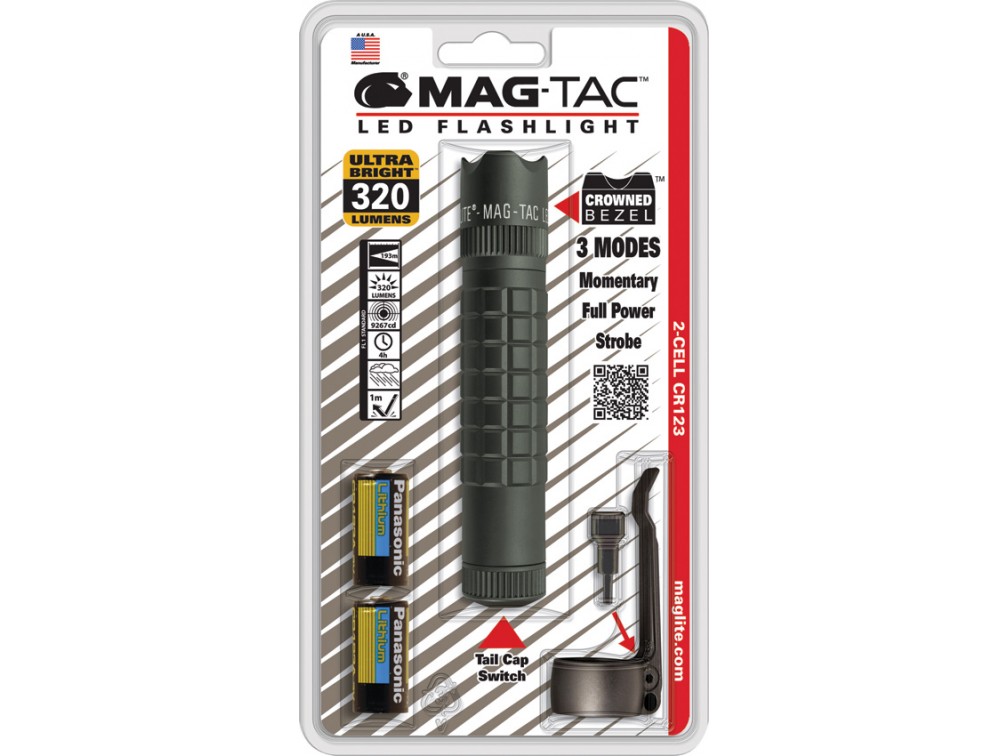 Maglite — легендарный американский бренд фонарей, который полностью производится в Южной Калифорнии. Эти фонари известны своим качеством и надёжностью, благодаря чему их активно используют в полиции и армии США. Maglite также часто появляются в различных фильмах и сериалах, став настоящей иконой американского производства. Продукция Maglite воплощает американскую мечту и отличается инновационными технологиями и высоким качеством . Тактический светодиодный фонарь Maglite MAG-TAC LED, с общей длиной около 13 см, является мощным и надежным инструментом для профессионального использования. Корпус фонаря изготовлен из авиационного алюминия высокого класса с анодированным покрытием, имеет насечки для лучшего захвата и украшен венцовым ободком. Фонарь оснащен сверхярким белым светодиодом, обеспечивающим мощность света до 320 люмен и видимость на расстояние до 193 метров. Maglite MAG-TAC предлагает три режима работы: мгновенный, постоянный и стробоскопический, что делает его идеальным для тактических задач и экстренных ситуаций. Фонарь водонепроницаем до 1 метра и работает на двух батареях CR123, которые уже включены в комплект. Время работы составляет до 4 часов в режиме высокой мощности и до 17 часов в режиме низкой мощности. Управление осуществляется с помощью кнопки на задней крышке. Maglite MAG-TAC LED идеален для правоохранительных органов, военных или любителей активного отдыха, нуждающихся в надежном, мощном и удобном в использовании фонаре.