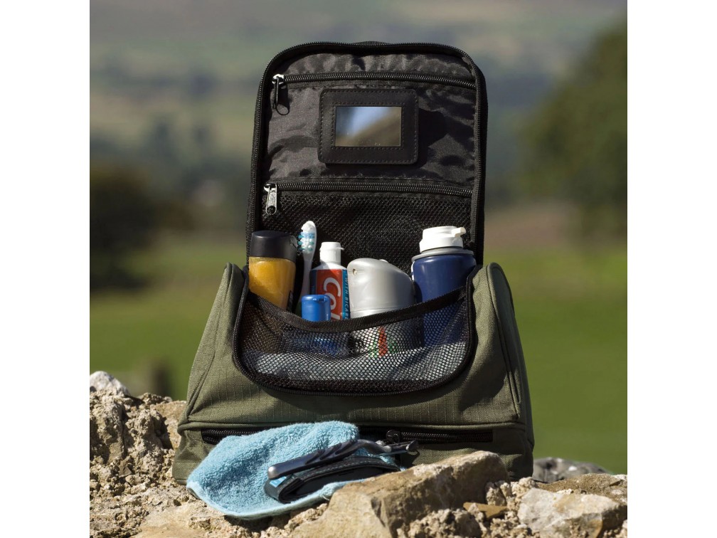 - Крючок для подвешивания, позволяющий удобно размещать несессер в ванной комнате или в палатке