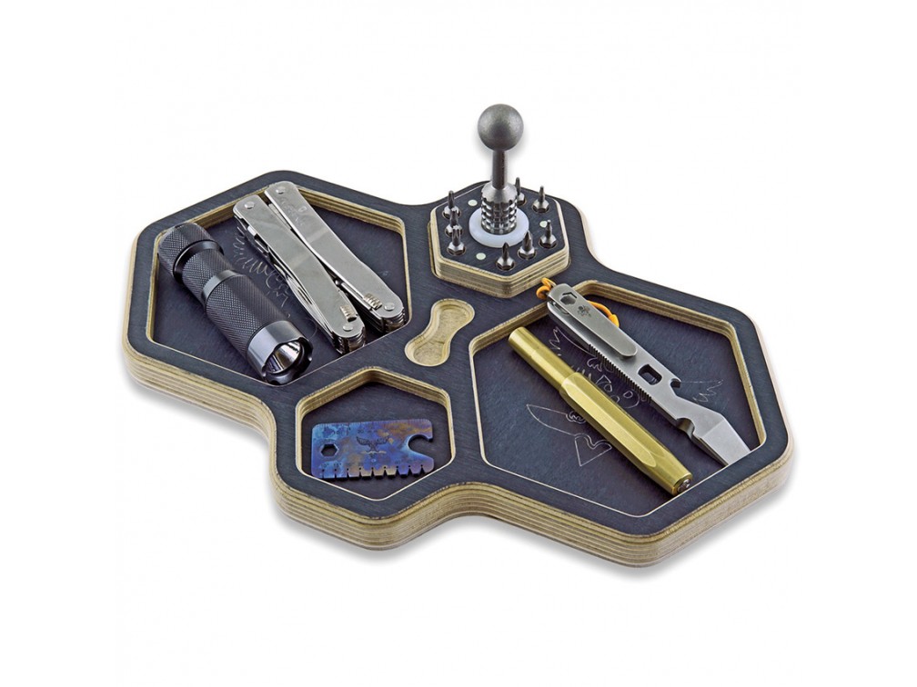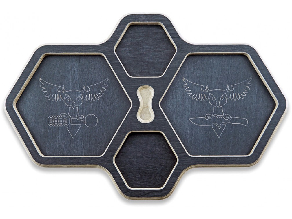 Audacious Concept (AuCon) — это уникальный проект из Финляндии, который смело заявляет о себе на мировой арене, предлагая одни из самых интересных и инновационных дизайнов в области EDC снаряжения и аксессуаров. Основанная талантливым энтузиастом - Русланом Сарычевым, компания специализируется на создании уникальных, функциональных решений для повседневного ношения, сочетая качество и стиль. Трей-органайзер Audacious Concept HexTray — это идеальное решение для организации вашего EDC-снаряжения. Изготовленный из высококачественной березовой фанеры, этот органайзер оборудован двумя большими и двумя малыми шестиугольными отделениями, которые позволяют удобно разместить и организовать предметы из карманов или рюкзака. Дополнительная стабильность обеспечивается за счет ножек из пеноматериала, предотвращающих скольжение.