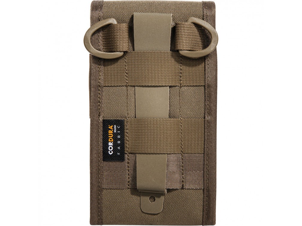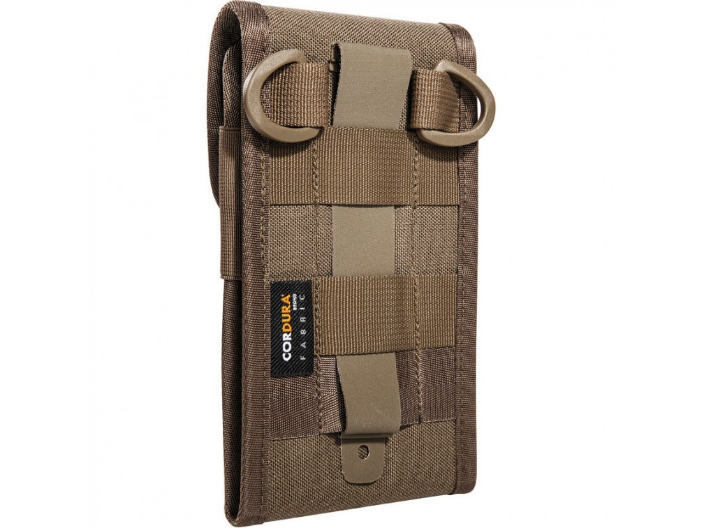 Tasmanian Tiger Tactical Phone Cover XXL — прочный телефонный чехол от немецкого бренда Tasmanian Tiger, специализирующегося на производстве тактического снаряжения и экипировки для военных, спасателей и активного отдыха. Чехол изготовлен из износостойкой ткани Cordura 700D, внутренняя часть мягко набита тканью для защиты экрана от царапин. Размеры изделия составляют примерно 17 см в высоту, 9,5 см в ширину и 1 см в толщину (6,7 x 3,7 x 0,4 дюйма). Вес чехла около 75 граммов, что обеспечивает удобство ношения без лишнего утяжеления. Конструкция включает надёжное крепление с помощью системы MOLLE/PALS, позволяющее прикрепить чехол к тактическому жилету, поясу или рюкзаку, а также два D-образных кольца для дополнительного крепления. Практически предназначен для защиты смартфонов больших размеров или аксессуаров аналогичных габаритов, обеспечивая удобство и безопасность при использовании в полевых условиях и тактических операциях.