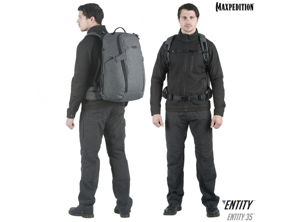 Maxpedition — легендарный американский бренд, известный своими тактическими рюкзаками и сумками EDC. Основанная в 2003 году, компания завоевала популярность благодаря своей приверженности к качеству и долговечности продукции. Рюкзаки Maxpedition создаются с использованием высококачественных материалов, таких как нейлон плотностью 1000D, и предназначены для экстремальных условий эксплуатации. Продукция бренда пользуется доверием среди военных, сотрудников правоохранительных органов и любителей активного отдыха по всему миру.Тактический городской рюкзак для ноутбука Maxpedition Entity 35 объемом 35 литра - это эргономичный рюкзак с мягкими плечевыми лямками и быстросъемными пряжками. В нем предусмотрено специальное запираемое и мягкое отделение для 15- или 17-дюймового ноутбука. Основное отделение также можно запереть, и оно оснащено ремнями для дополнительной безопасности. Передняя часть имеет складывающиеся магнитные крылья для быстрого закрытия основного отделения.