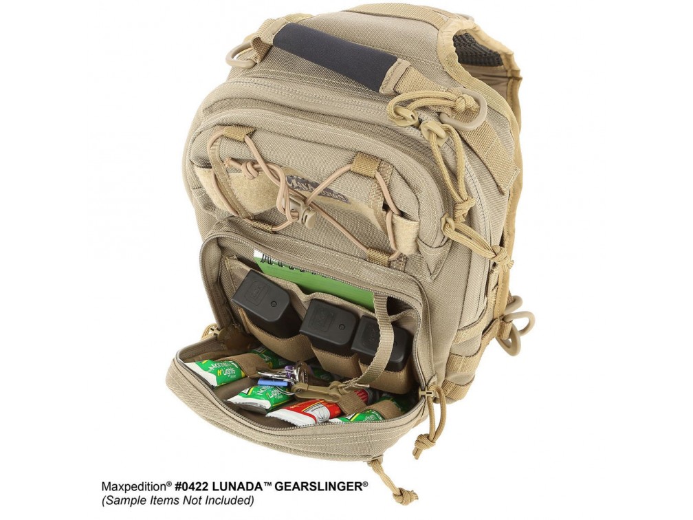 Maxpedition Lunada, с двойным объемом по сравнению с Maxpedition Remora Gearslinger, многофункциональный рюкзак, спроектированный с учетом большего количества карманов. Основной отсек достаточно вместителен, чтобы вместить любой стандартный планшет в жестком чехле. Улучшенный плечевой ремень с антискользящей поверхностью имеет дополнительную подушечку и быстрый доступ, а дополнительный грудной перекрестный ремень обеспечивает надежное прилегание снаряжения к телу, что особенно полезно при беге или походах в отдаленные места. В Lunada есть место для 2 пистолетов с дополнительным пространством для лицензий и боеприпасов, что делает его оптимальным выбором для посещения стрельбища.