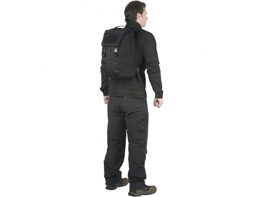 Рюкзак изготовлен из легкого баллистического нейлона плотностью 500D с тройным полиуретановым покрытием для водостойкости. Высокопрочные молнии YKK, пряжки UTX-Duraflex и усиленные швы обеспечивают долговечность. Внутренние карманы-сетки, мягкие плечевые ремни с быстросъемными пряжками и съёмный поясной ремень добавляют комфорта и функциональности. Teflon покрытие защищает от грязи и облегчает уход.
