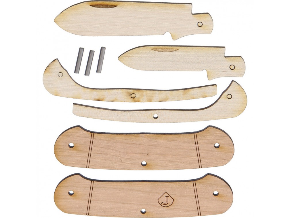 JJ's Knife Kit, также известный как Jameson Woodworks, — это американский бренд, который начал свою деятельность как полноценный бизнес в 2009 году. Основатель компании был уволен, что стало толчком к развитию его хобби в производство деревянных ножей и игрушек. С тех пор компания ставит своей целью создавать лучшие деревянные ножи и игрушки, производимые исключительно в США. JJ's Knife Kit выделяется своим стремлением к высочайшему качеству, удовлетворению клиентов и предложению наилучшей стоимости своих изделий. Набор для сборки деревянного ножа JJ's Knife Kit Canoe — это отличный выбор для тех, кто хочет самостоятельно собрать карманный нож с двумя лезвиями. Все детали упакованы в фирменную металлическую коробку, что делает набор удобным для хранения или в качестве подарка. Боковые части ножа выполнены из вишневого дерева, а лезвия и пружины — из клена, что обеспечивает не только красивый внешний вид, но и долговечность изделия.