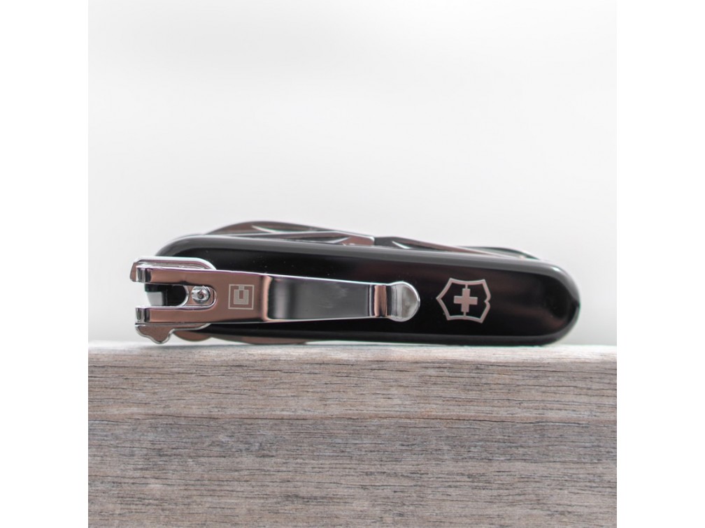 Clip & Carry — американский бренд, специализирующийся на производстве чехлов и аксессуаров для мультитулов и швейцарских армейских ножей. Все изделия бренда полностью производятся в США, что гарантирует высокое качество и надёжность. Продукция Clip & Carry разработана для обеспечения удобства и функциональности, каждый элемент тщательно продуман для повседневного или специализированного использования. Благодаря использованию прочных материалов и инновационных технологий аксессуары Clip & Carry обеспечивают надёжное хранение и быстрый доступ к инструментам в любых условиях. Клипса Clip & Carry SwissQlip представляет собой идеальное решение для тех, кто использует средние модели швейцарских армейских ножей Victorinox длиной 91 мм. Этот глубокий карманный клип позволяет надежно крепить ножи моделей Angler, Camper, Climber, Compact, Cybertool, Explorer, Fieldmaster и многих других к краю кармана, что обеспечивает удобный и быстрый доступ к инструменту.