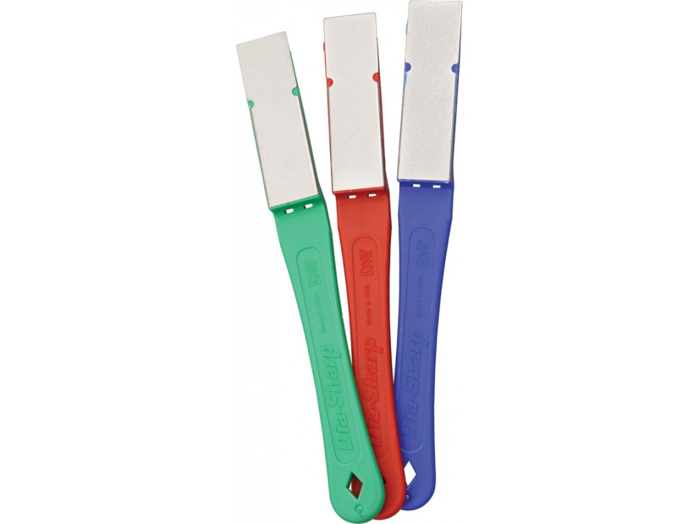Extra-Fine и Extra-Extra Fine - Полируют кромку до идеальной гладкости. Цвет кода Extra-Fine: зеленый, размер алмаза: 9 микрон (1200 mesh); Extra-Extra Fine: тан, размер алмаза: 3 микрон (8000 mesh). Размер каждой зоны для заточки 6,35 см x 1,9 см. Синие, красные и зеленые эргономичные ручки. Отлично подходит для мелких и острых инструментов. Обеспечивает удобную заточку, удаление заусенцев и правку на труднодоступных участках. Сохраняет плоскость. Страна происхождения: США.