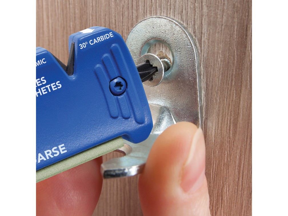 Extra-Fine и Extra-Extra Fine - Полируют кромку до идеальной гладкости. Цвет кода Extra-Fine: зеленый, размер алмаза: 9 микрон (1200 mesh); Extra-Extra Fine: тан, размер алмаза: 3 микрон (8000 mesh). Общая длина 13,3 см. В комплект входят: многоугольный точильщик из карбида; керамические точильщики под углом 20 и 30 градусов; точильщики из карбида под углом 20 и 30 градусов; отвертка с крестовым наконечником; отвертка с плоским наконечником; точильщик средней зернистости; точильщик крупной зернистости. Ручка с нескользящим покрытием.