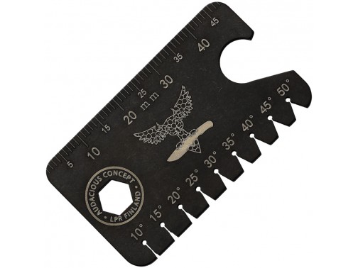 Audacious Concept (AuCon) — это уникальный проект из Финляндии, который смело заявляет о себе на мировой арене, предлагая одни из самых интересных и инновационных дизайнов в области EDC снаряжения и аксессуаров. Основанная талантливым энтузиастом - Русланом Сарычевым, компания специализируется на создании уникальных, функциональных решений для повседневного ношения, сочетая качество и стиль. Dog Tag 3.0 Anglefinder — мультитул в форме армейского жетона. Изготовлен из титана, этот мультитул сочетает в себе несколько функций, делая его идеальным инструментом для точной работы, включая заточку ножей. Размеры жетона составляют приблизительно 50.8 мм в длину, 28.7 мм в ширину и 1.78 мм в толщину.