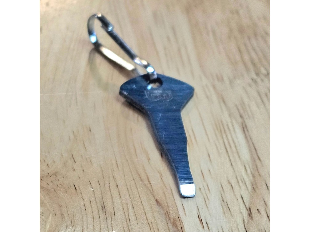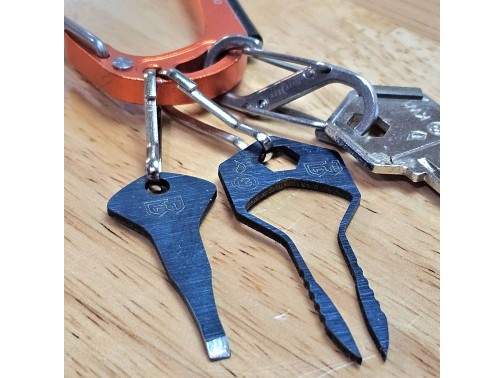 Pry Bar Key — компактный многофункциональный инструмент от американского бренда Grim Workshop, специализирующегося на EDC‑аксессуарах и выживальческих решениях. Инструмент выполнен из высокоуглеродистой или хирургической нержавеющей стали и сочетает в себе функции мини‑лома, открывалки для бутылок, скребка и плоской отвёртки. Размер инструмента — примерно 1,63 дюйма по длине (≈ 4,1 см) и около 0,5 дюйма в ширину (≈ 1,3 см), толщина — примерно 0,7 мм. Вес составляет всего несколько граммов. Инструмент снабжён отверстием для подвеса на темляк или брелок. Благодаря компактному размеру он легко помещается на ключнице или в EDC‑органайзере и всегда под рукой для мелких задач, вскрытия упаковок или ремонта в полевых условиях. Надёжный и выносливый аксессуар, сделанный в США.
