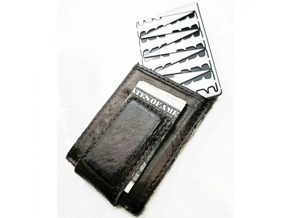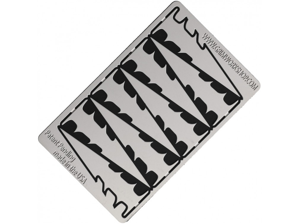 Grim Workshop — американский бренд, специализирующийся на создании компактных инструментов для выживания и ежедневного ношения. Основанный в Техасе, Grim Workshop предлагает широкий ассортимент многофункциональных инструментов, таких как survival карты, инструменты для ключей и ожерелья-брелоки. Эти инструменты, размером с кредитную карту, позволяют носить с собой все необходимое для выживания и повседневных задач. Все продукты бренда изготавливаются в США из высококачественных материалов, что обеспечивает их долговечность и надежность. Grim Workshop стремится создавать уникальные и функциональные инструменты для всех, кто ценит готовность к любым жизненным ситуациям. Grim Workshop Arrowhead Survival Card включает восемь наконечников стрел для охоты и рыбалки. Карта компактна и легка, изготовлена из нержавеющей стали, что делает её долговечной и устойчивой к коррозии. Она легко помещается в кошелек или небольшую коробочку, что обеспечивает её удобство в ношении и использовании в любой ситуации. Эта карта предназначена для использования в походах и на рыбалке, обеспечивая доступ к необходимым инструментам для выживания в дикой природе. Уникальная система удержания инструментов позволяет легко извлекать и возвращать наконечники стрел на место, предотвращая их потерю и обеспечивая надежное хранение.