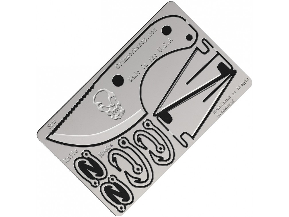 Grim Workshop — американский бренд, специализирующийся на создании компактных инструментов для выживания и ежедневного ношения. Основанный в Техасе, Grim Workshop предлагает широкий ассортимент многофункциональных инструментов, таких как survival карты, инструменты для ключей и ожерелья-брелоки. Эти инструменты, размером с кредитную карту, позволяют носить с собой все необходимое для выживания и повседневных задач. Все продукты бренда изготавливаются в США из высококачественных материалов, что обеспечивает их долговечность и надежность. Grim Workshop стремится создавать уникальные и функциональные инструменты для всех, кто ценит готовность к любым жизненным ситуациям. Grim Workshop Bushcraft Card — это компактный многофункциональный инструмент, включающий нож, пилу, рыболовные крючки, иглы и наконечники для стрел. Эта карта изготовлена из нержавеющей стали, что обеспечивает её долговечность и устойчивость к коррозии. Она легко помещается в кошелек или небольшую коробочку, что делает её удобной для ношения и использования в любых условиях. Карта предназначена для использования в походах, на рыбалке и в экстренных ситуациях, обеспечивая доступ к необходимым инструментам в любой момент. Уникальная система удержания инструментов предотвращает их потерю и обеспечивает надежное хранение, что делает эту карту отличным выбором для любителей активного отдыха и выживания.
