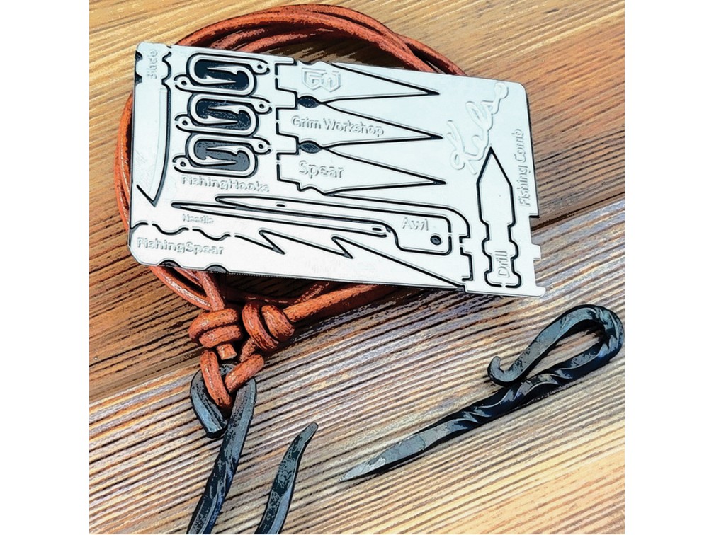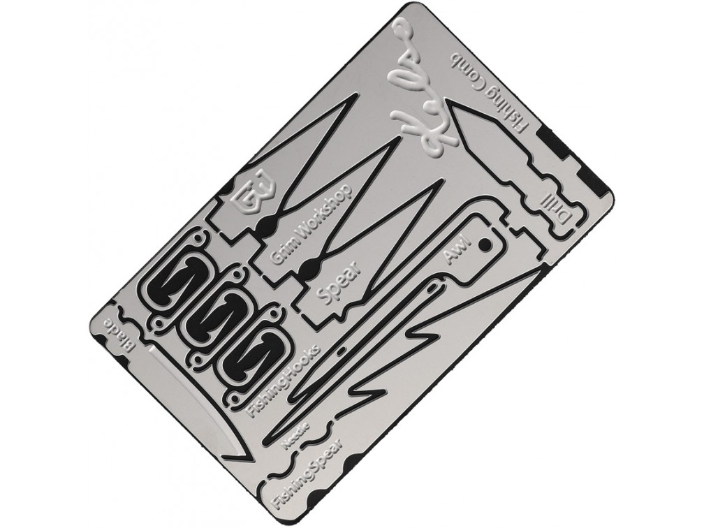 Grim Workshop — американский бренд, специализирующийся на создании компактных инструментов для выживания и ежедневного ношения. Основанный в Техасе, Grim Workshop предлагает широкий ассортимент многофункциональных инструментов, таких как survival карты, инструменты для ключей и ожерелья-брелоки. Эти инструменты, размером с кредитную карту, позволяют носить с собой все необходимое для выживания и повседневных задач. Все продукты бренда изготавливаются в США из высококачественных материалов, что обеспечивает их долговечность и надежность. Grim Workshop стремится создавать уникальные и функциональные инструменты для всех, кто ценит готовность к любым жизненным ситуациям. Grim Workshop Bushcraft Kelso Survival Card включает множество инструментов для выживания, таких как рыболовные крючки, нож, пила, иглы и наконечники для стрел. Изготовленная из нержавеющей стали, эта карта отличается долговечностью и устойчивостью к коррозии. Она компактна и легка, что позволяет носить её в кошельке или небольшой коробочке, обеспечивая доступность в любой ситуации. Карта предназначена для использования в походах и на рыбалке, предоставляя все необходимые инструменты для выживания в дикой природе. Уникальная система удержания инструментов предотвращает их потерю и обеспечивает надежное хранение.
