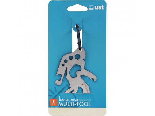 Общая длина: около 9,2 см. Инструменты включают: держатель для бит/шестигранных ключей, открывалку для банок, гаечный ключ, плоскую отвертку, крестовую отвертку, линейку, нож для ремней/веревок, открывалку для бутылок, карабин. Форма Сасквоча. Изготовлен из нержавеющей стали.