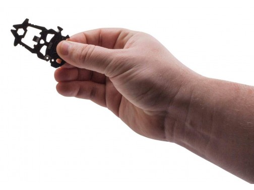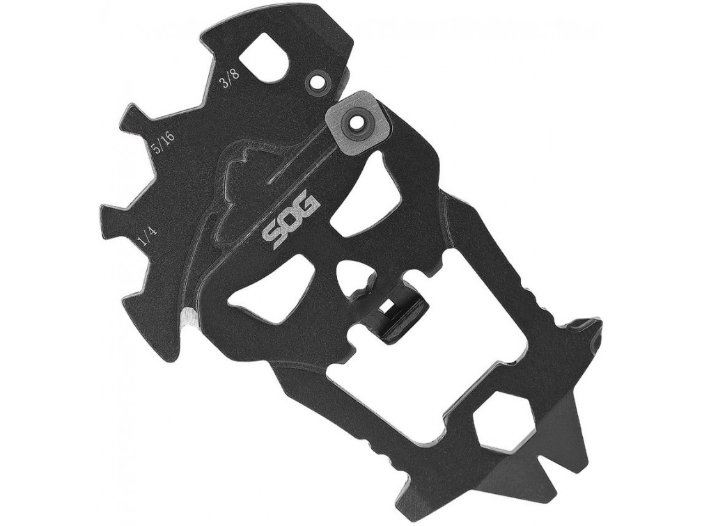 SOG MacV Multi Tool — компактный многофункциональный инструмент американского бренда SOG, специализирующегося на производстве высококачественных ножей и мультитулов для активного отдыха и повседневного использования. Этот мультитул выполнен из нержавеющей стали 3Cr13 с чёрным покрытием, обеспечивающим долговечность и устойчивость к коррозии. Размеры инструмента составляют примерно 6,35 см (2,5 дюйма) в длину и 3,8 см (1,5 дюйма) в ширину, вес — около 17 граммов (0,6 унции), что делает его очень лёгким и удобным для ношения на связке ключей или в кармане. Включает 12 функций, таких как монтажная лопатка (pry bar), открывалка для бутылок, отвёртки плоские и крестообразные разного размера, резак для лески, точилка для лезвий, гаечные ключи нескольких размеров (1/4", 5/16", 3/8"), шестигранный драйвер и отверстие для крепления на шнур или связку ключей. Практически применяется для мелких бытовых и туристических задач — открытие бутылок, затягивание или ослабление крепежа, резка шнура, точение лезвий и другие. Изделие компактно, прочное и предназначено для ежедневного ношения.