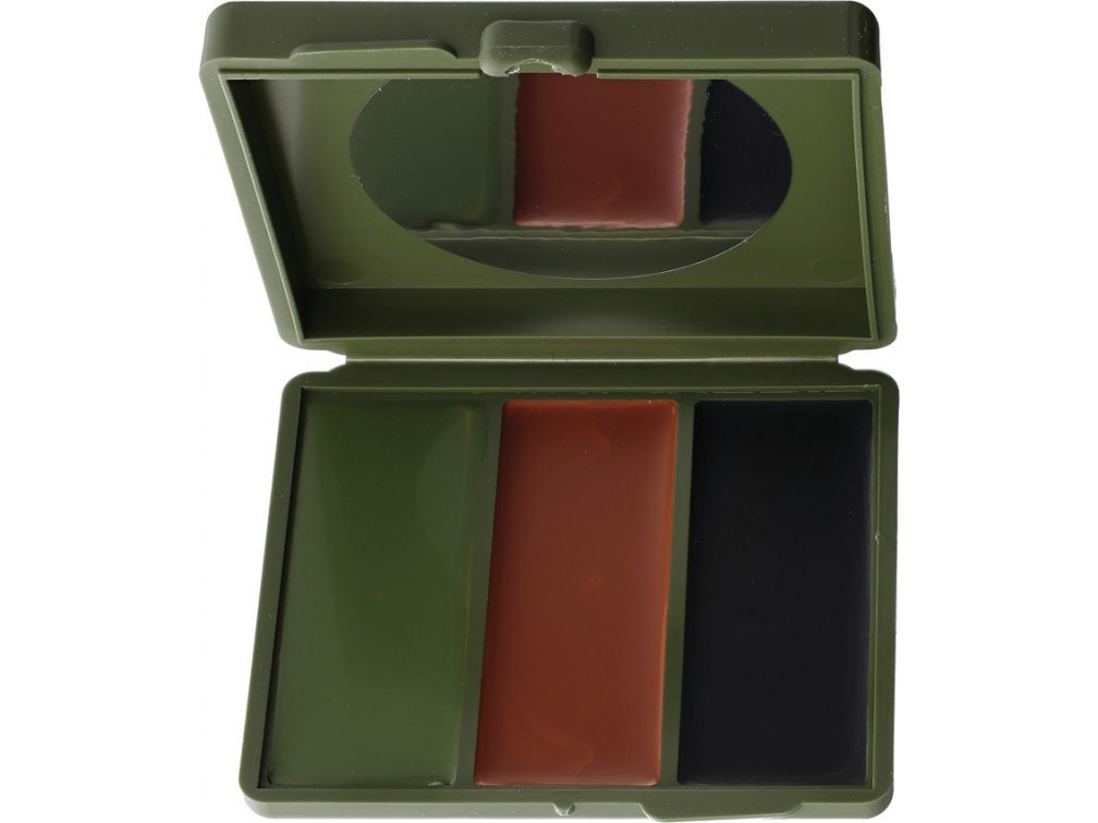 Combat Face Paint Compact — профессиональная палетка камуфляжного грима от американского бренда Bobbie Weiner, официального поставщика армии США и признанного гримера Голливуда. Бренд специализируется на высококачественной продукции, полностью произведённой в США, и его создательница участвовала в гриме для фильма «Титаник». Палетка содержит четыре базовых оттенка для военной и туристической маскировки: чёрный, тёмно-зелёный, песочный и танковый коричневый. Кремовая текстура легко наносится кистью или пальцами, устойчива к поту, ветру и дождю, не вызывает раздражения кожи и смывается мягким очищением. Упакована в компактный пластиковый кейс с надёжной защёлкой и встроенным зеркалом для применения в полевых условиях. Размер кейса составляет примерно 6 × 4 × 1,5 см, вес — около 30 г. Предназначена для использования военными, охотниками, оперативными службами и поклонниками активного отдыха, которым важно быть незаметным в условиях леса или пустыни. Эффективна и удобна при нанесении на лицо и открытые участки тела. Сделано в США.