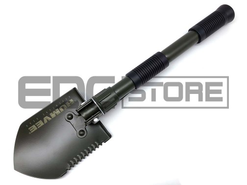 Компактная складная лопата. Отлично подойдет для полевых работ, активного отдыха, а также будет полезной в багажнике автомобилиста. Помимо основной функции лопата может трансформироваться в кирку, а зубцы на одной из сторон позволяют использовать лопату как пилу. Рукоять прорезинена для удобства удержания и кофортного использования на морозе.