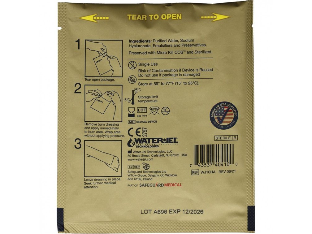 Water-Gel Technologies — известный бренд медицинских принадлежностей, специализирующийся на продукции для оказания первой помощи при ожогах, включая гели, компрессы и спреи. Стремясь обеспечить высочайшее качество и надежность своих изделий, компания гордится тем, что все ее товары полностью производятся в США. Продукция Water-Gel Technologies разработана с учетом потребностей как медицинских профессионалов, так и обычных пользователей, обеспечивая эффективное и безопасное лечение ожогов. Тактический ожоговый перевязочный материал Военный (WJ10-HA) представляет собой стерильную пропитанную гелем повязку, предназначенную для оказания первой помощи при ожогах. Размеры повязки составляют 10 см x 10 см. Этот продукт останавливает процесс горения, не прилипает к ране, помогает предотвратить загрязнение и не требует использования воды для применения. Состав: очищенная вода, гиалуронат натрия, эмульгаторы, консерванты. Повязка предназначена для однократного использования. Хранить при температуре от 15°C до 25°C.
