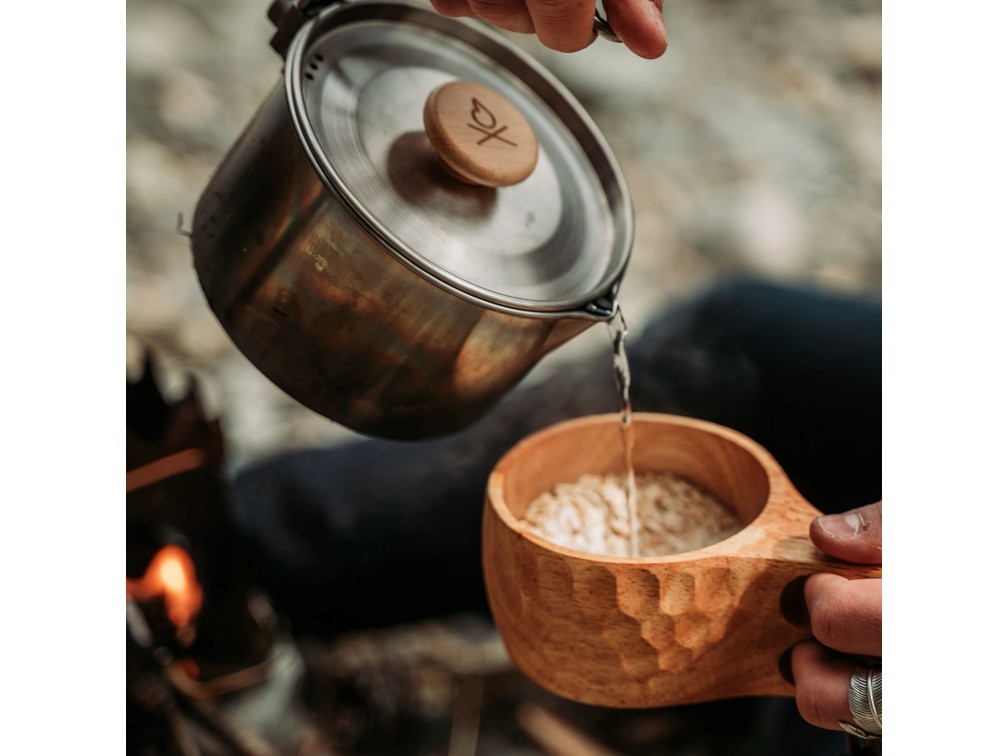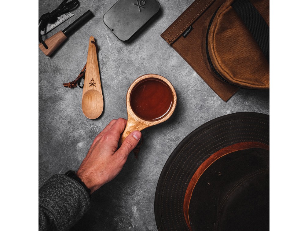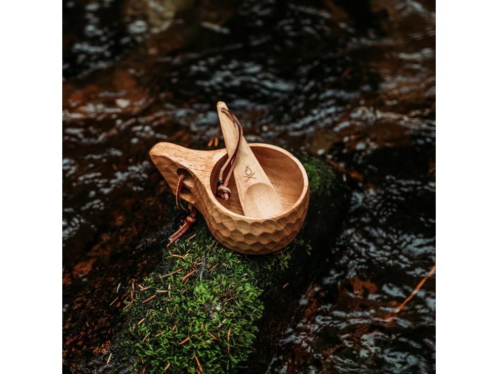Uberleben — это американский бренд, специализирующийся на производстве высококачественного снаряжения для выживания и кемпинга. Основной акцент делается на товары, которые помогают людям на природе, такие как огнива, походные котелки и кружки. Продукция бренда отличается прочностью, долговечностью и эстетичным дизайном, вдохновленным скандинавскими традициями. Все товары Uberleben разрабатываются в США, что гарантирует их высокое качество и надежность. Бренд стремится вернуть людей к основам, укрепляя их связь с природой. Original Kuksa от Uberleben (модель DU-TR08-0101) — это традиционная ручная деревянная кружка, изготовленная из цельного куска древесины. Объем кружки составляет 200 мл (6,8 унций), а вес — около 120 г. Кружка обработана натуральным маслом, не содержащим BPA, что делает её безопасной для использования с напитками. В комплекте идет кожаный шнурок для удобного ношения. Эта кружка идеально подходит для любителей активного отдыха, ценящих традиционный дизайн и высокое качество.
