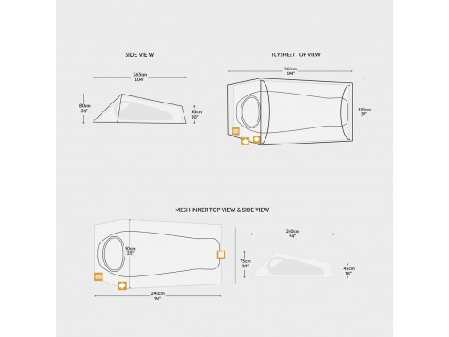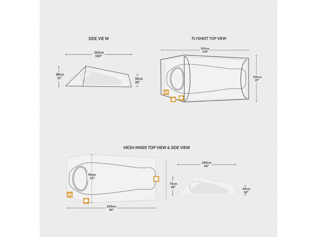 Ionosphere IX - ваш щит против капризов природы. Водонепроницаемый тент с покрытием на 5000 мм и проклеенные швы станут надежной защитой даже в суровых погодных условиях. Просторный интерьер (240 см на 90 см) предлагает достаточно места для отдыха и хранения снаряжения, а в случае необходимости палатка способна вместить двух человек.