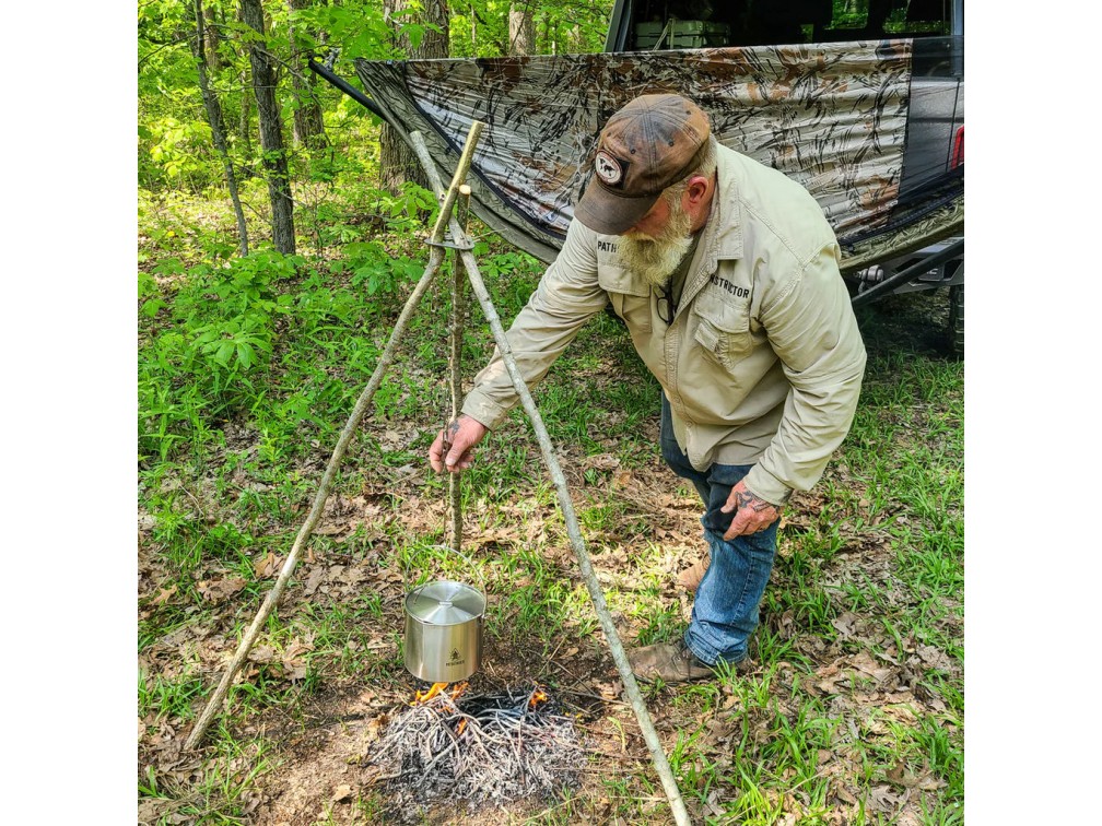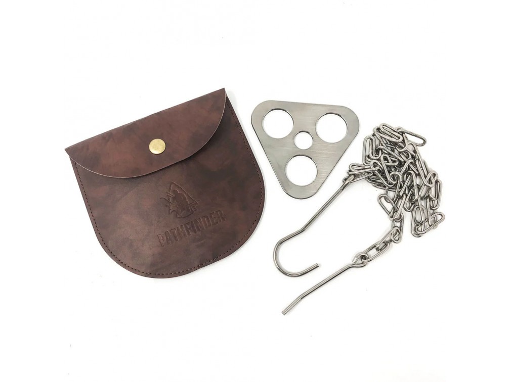 Pathfinder — это американский бренд туристического снаряжения и аксессуаров для выживания, основанный Дэйвом Кентербери, известным экспертом в области бушкрафта и самодостаточности на природе. Pathfinder предлагает широкий ассортимент товаров, включая кухонные наборы из нержавеющей стали, фильтры для воды, средства для разжигания огня и различные инструменты для выживания. Бренд специализируется на высококачественной продукции, проверенной инструкторами Pathfinder School и предназначенной как для новичков, так и для опытных любителей активного отдыха. Pathfinder стремится обеспечить максимальную готовность к любым условиям на природе. Набор для треноги Pathfinder Tripod Kit Stainless включает в себя три ножки и центральный крюк, выполненные из нержавеющей стали. Ножки имеют длину 100 см и диаметр 2 см, а центральный крюк — длину 15 см и диаметр 1 см. Вес набора составляет около 1 кг. Этот комплект идеально подходит для подвешивания котелков и других емкостей над огнем, обеспечивая стабильность и безопасность при приготовлении пищи. Набор легко собирается и разбирается, что делает его удобным для переноски и использования в походных условиях.