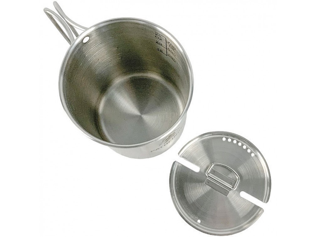 Pathfinder — это американский бренд туристического снаряжения и аксессуаров для выживания, основанный Дэйвом Кентербери, известным экспертом в области бушкрафта и самодостаточности на природе. Pathfinder предлагает широкий ассортимент товаров, включая кухонные наборы из нержавеющей стали, фильтры для воды, средства для разжигания огня и различные инструменты для выживания. Бренд специализируется на высококачественной продукции, проверенной инструкторами Pathfinder School и предназначенной как для новичков, так и для опытных любителей активного отдыха. Pathfinder стремится обеспечить максимальную готовность к любым условиям на природе. Набор Pathfinder Stainless Cup and Lid Set включает в себя чашку объемом 0,75 литра (25 унций) и соответствующую крышку. Чашка изготовлена из нержавеющей стали и имеет складную ручку и градуировку на 400 мл, 500 мл и 700 мл. Крышка плотно прилегает к чашке, предотвращая проливание и защищая содержимое от загрязнений. Этот набор идеально подходит для приготовления и употребления пищи и напитков на природе.