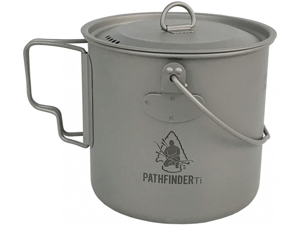 Pathfinder — это американский бренд туристического снаряжения и аксессуаров для выживания, основанный Дэйвом Кентербери, известным экспертом в области бушкрафта и самодостаточности на природе. Pathfinder предлагает широкий ассортимент товаров, включая кухонные наборы из нержавеющей стали, фильтры для воды, средства для разжигания огня и различные инструменты для выживания. Бренд специализируется на высококачественной продукции, проверенной инструкторами Pathfinder School и предназначенной как для новичков, так и для опытных любителей активного отдыха. Pathfinder стремится обеспечить максимальную готовность к любым условиям на природе. Котелок Pathfinder Titanium Bush Pot объемом 1100 мл (37,2 унции) — это легкий и прочный инструмент для приготовления пищи на природе. Он изготовлен из титана, что обеспечивает малый вес (около 200 грамм) и высокую долговечность. Размеры котелка составляют 11 см в диаметре и 12 см в высоту, что делает его компактным и удобным для переноски. Котелок оснащен складными ручками и крышкой с отверстием для выпуска пара, что упрощает использование и транспортировку. Титан обеспечивает равномерное распределение тепла и устойчивость к коррозии, что делает этот котелок идеальным выбором для туристов и выживальщиков.