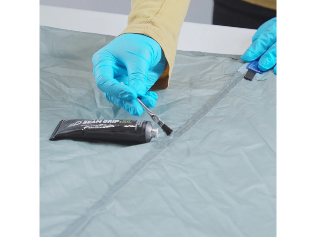 Ранее известный как SilNet, этот герметик превращается в гибкую резину, подходящую для всех видов силиконового снаряжения. Идеален для водонепроницаемости палаток из силнилона, поскольку силикон прилипает только к силикону. Seam Grip SIL гарантирует долговечность и гибкость ремонта, подходя для широкого спектра наружных тканей.